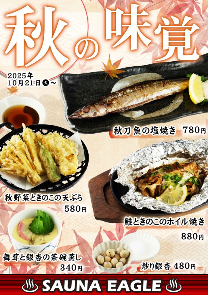 2025.10/21(火)~2025.11/3 秋の味覚フェア 公開日: 2025年10月21日 10月21日より、ゆるり家にて【秋の味覚フェア】を開催します! 様々な秋の味覚が登場! 今の季節が旬の食材を使用した料理が5品ございます! 是非ご賞味くださいませ 一覧に戻る
