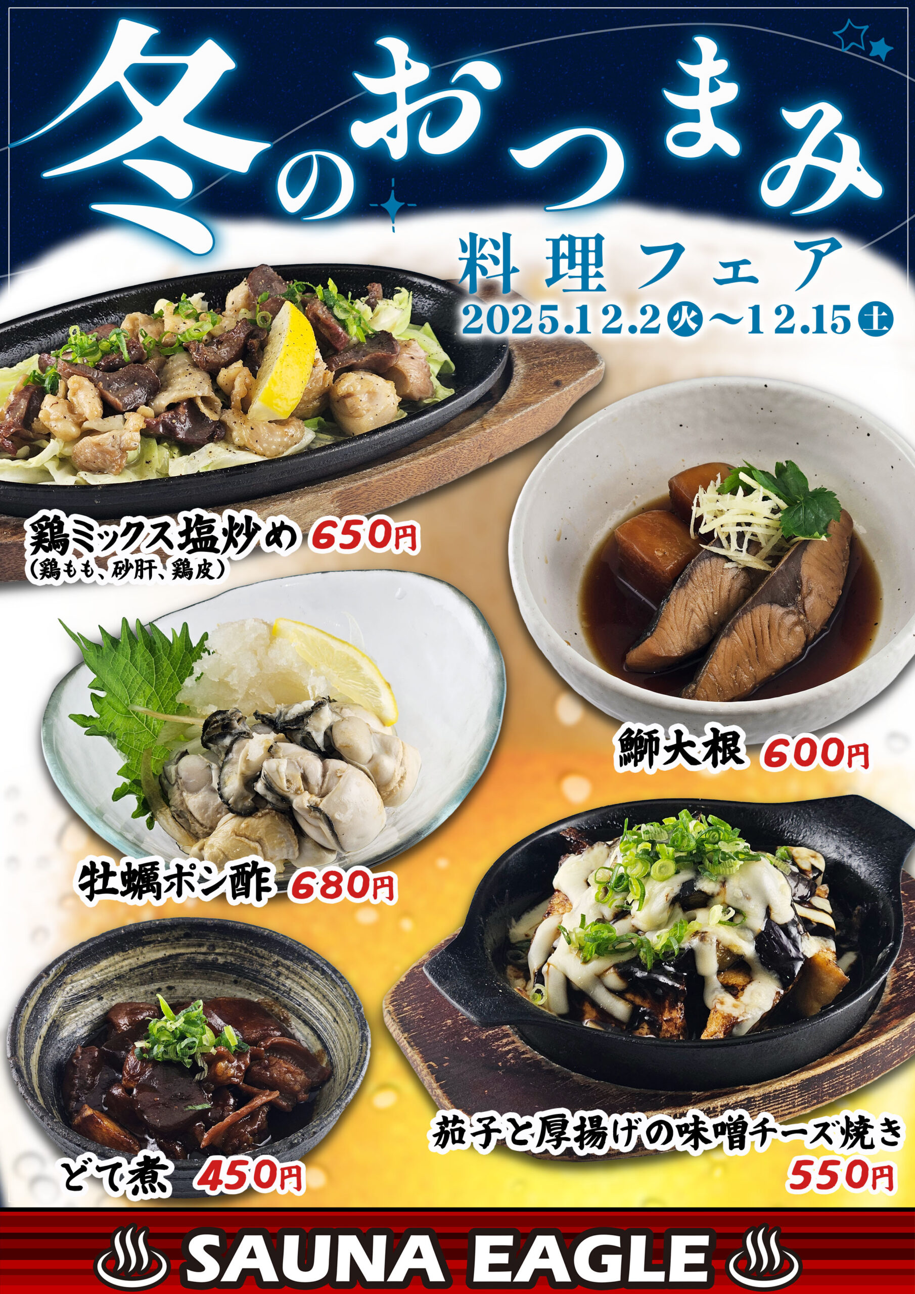 サウナやお風呂で温まったあとの“もう一品”にぴったりな、こだわりの冬メニューを豊富にご用意しました!