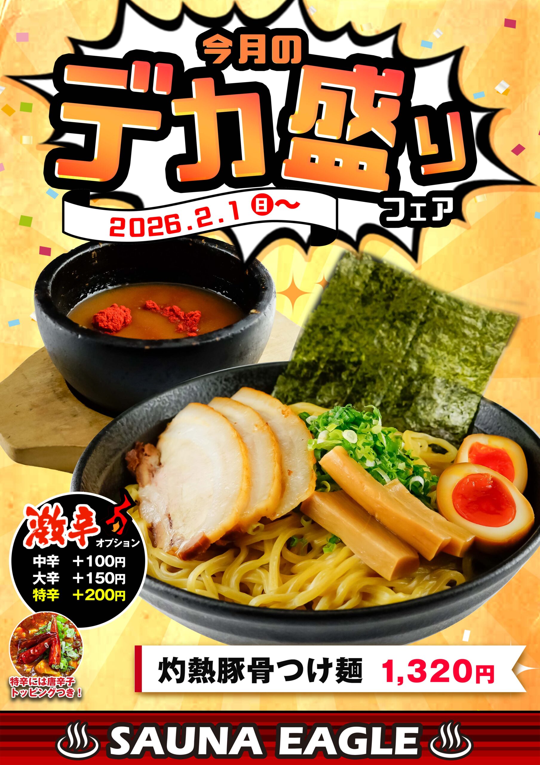 ①デカ盛り 灼熱豚骨つけ麵
