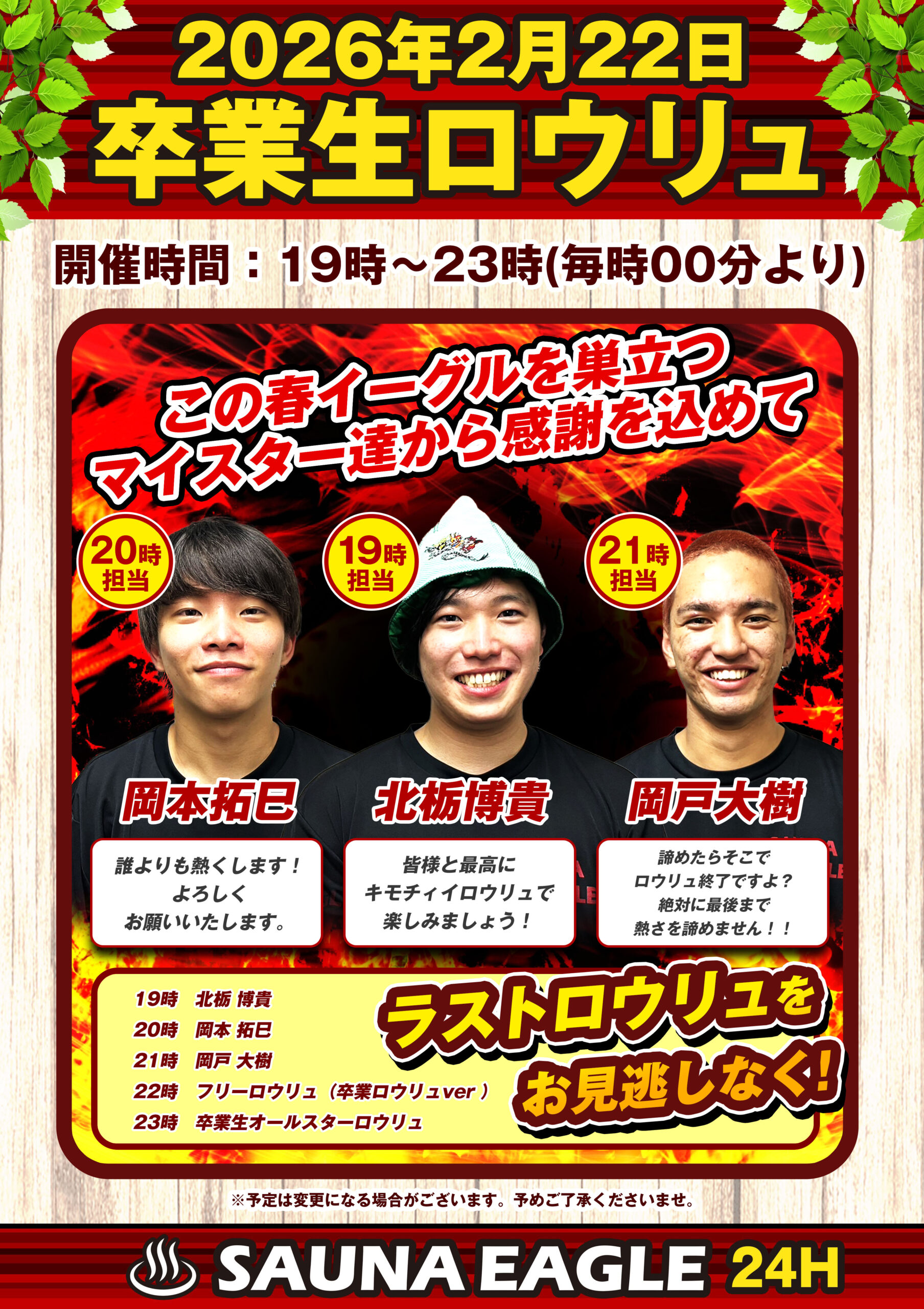 2/22(日) 卒業生ロウリュ!!