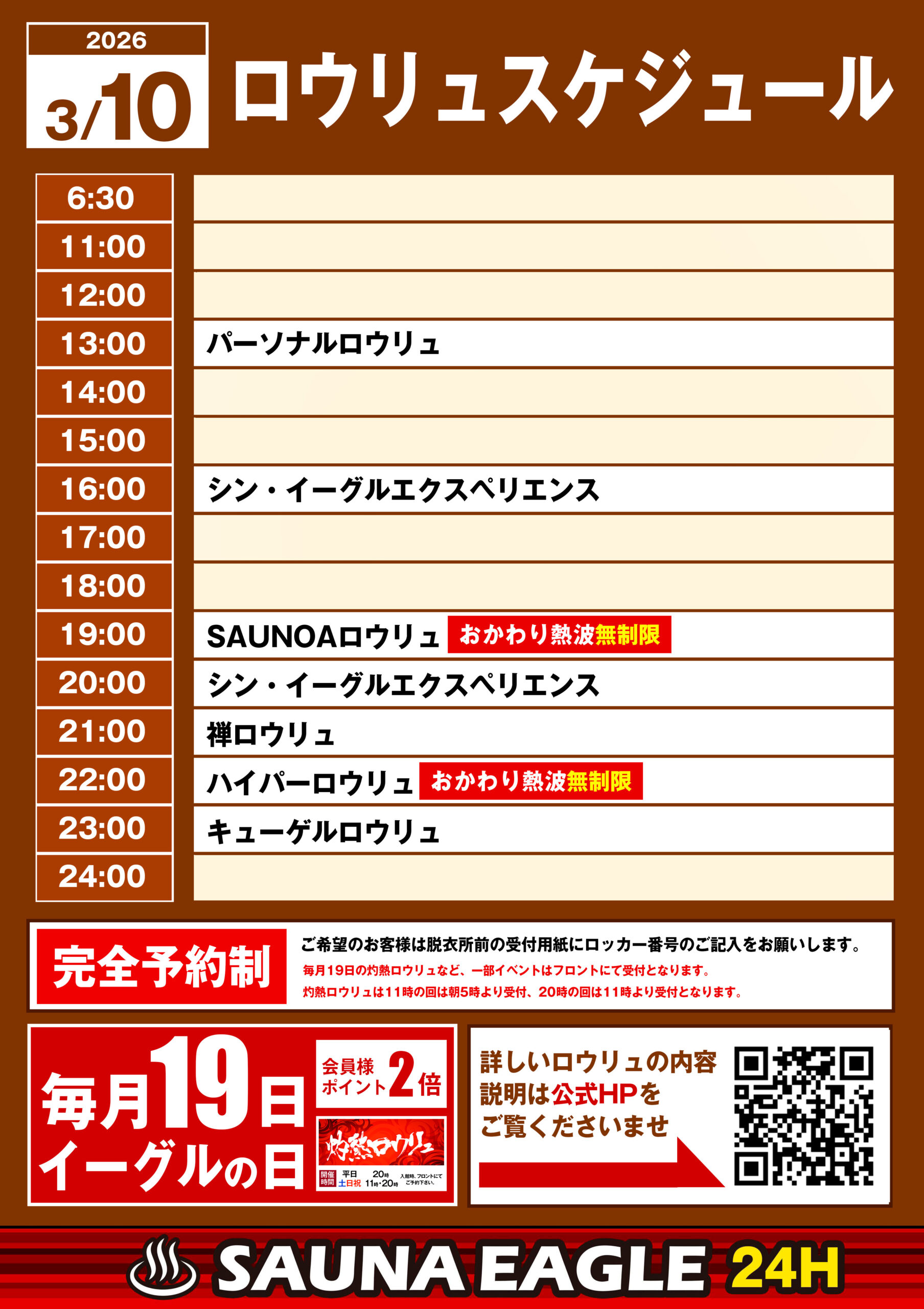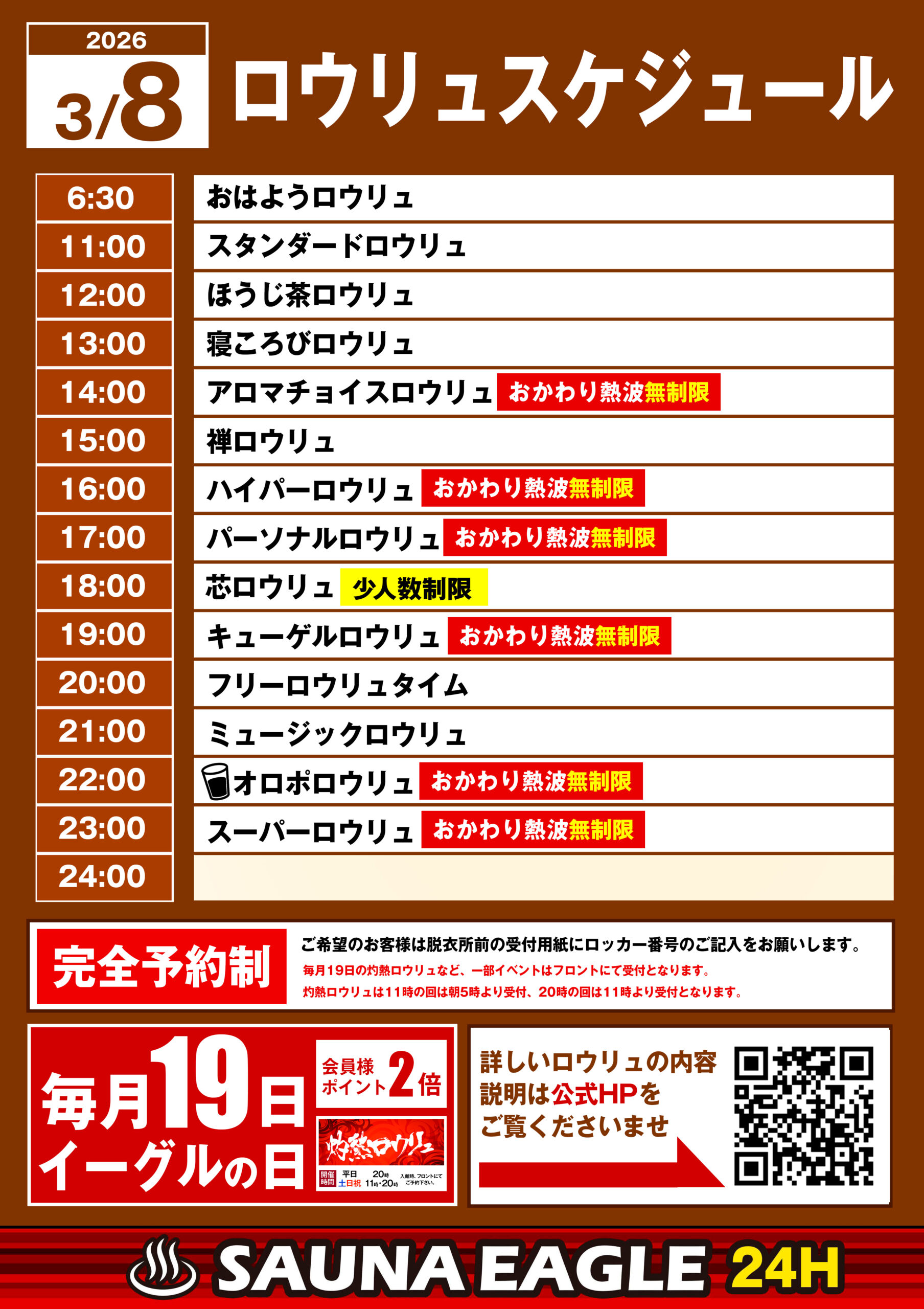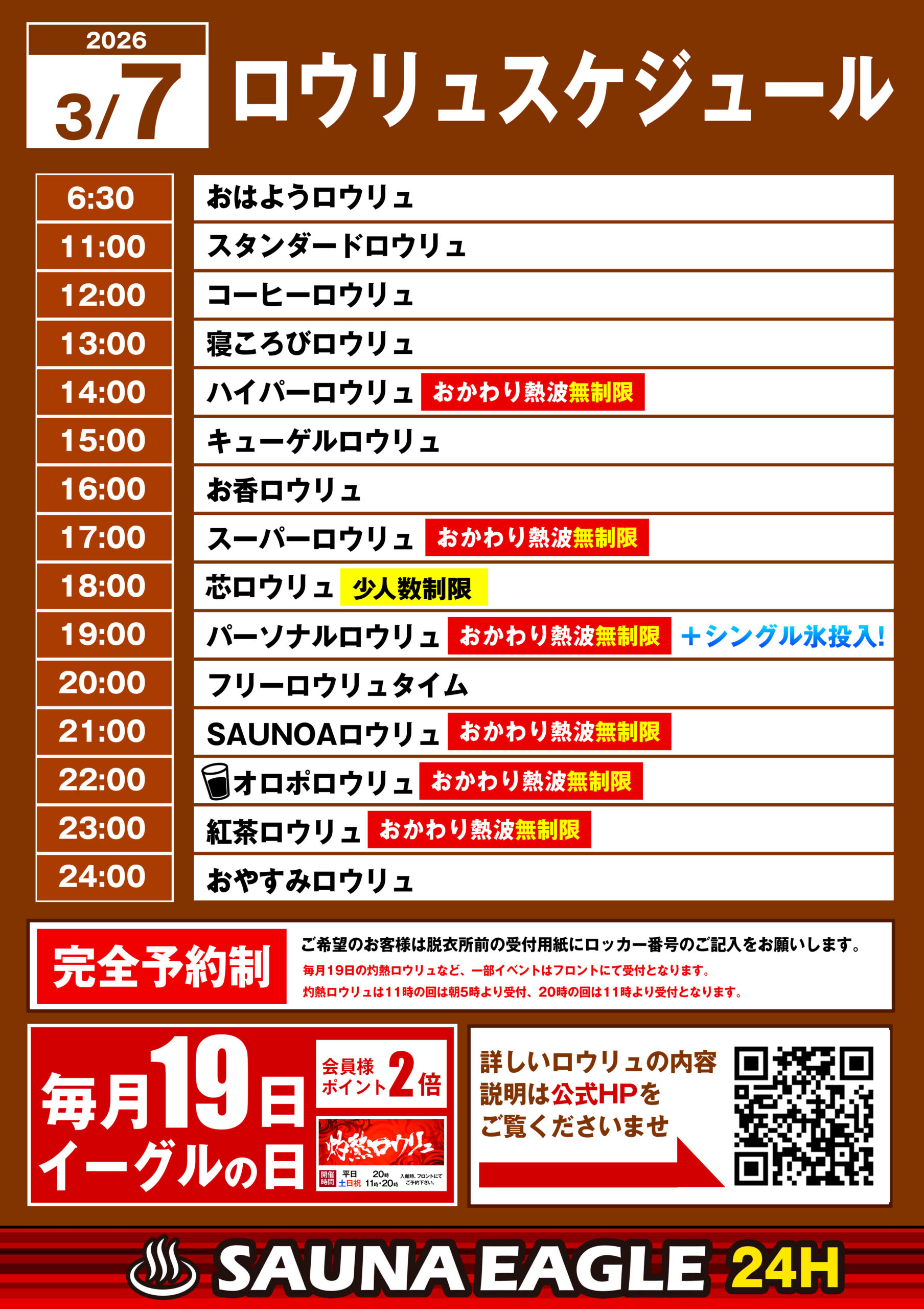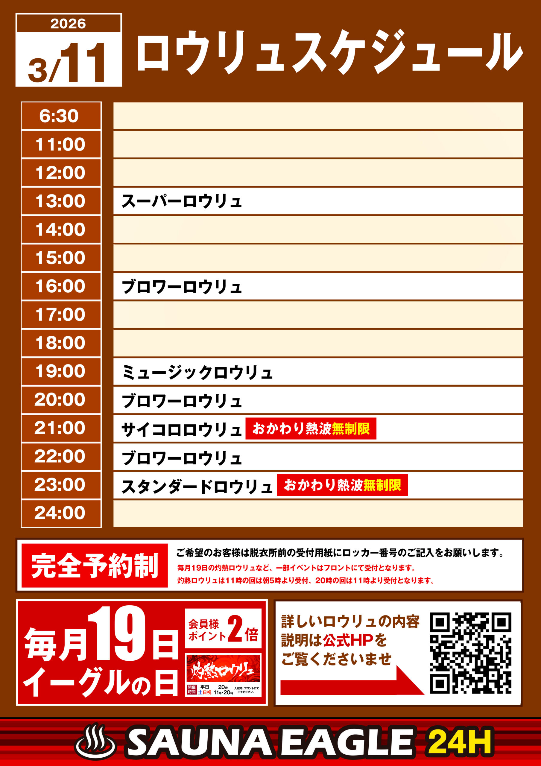 当日ロウリュスケジュール