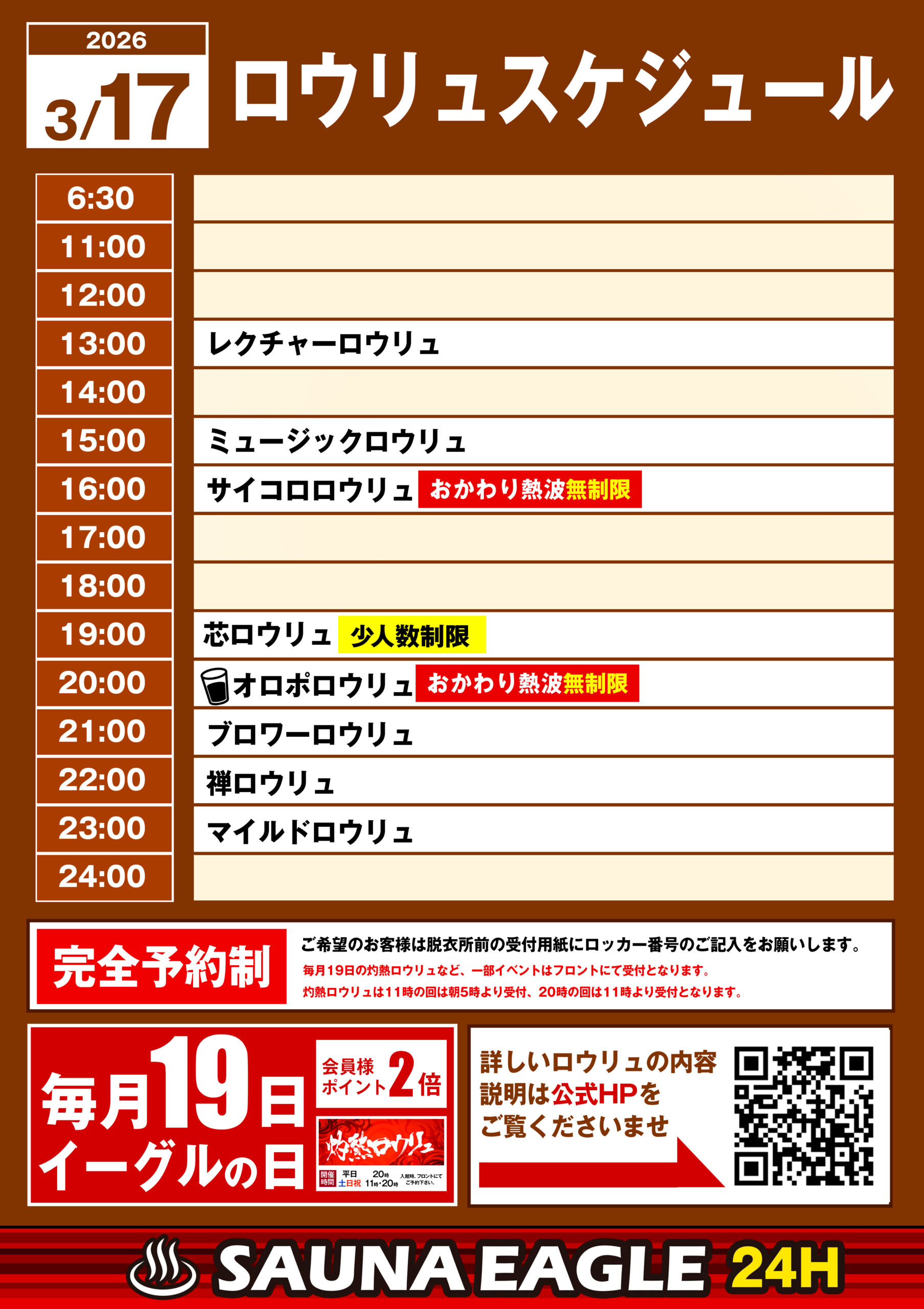 期間限定のロウリュイベントやイベントスケジュールはこちらからチェック!