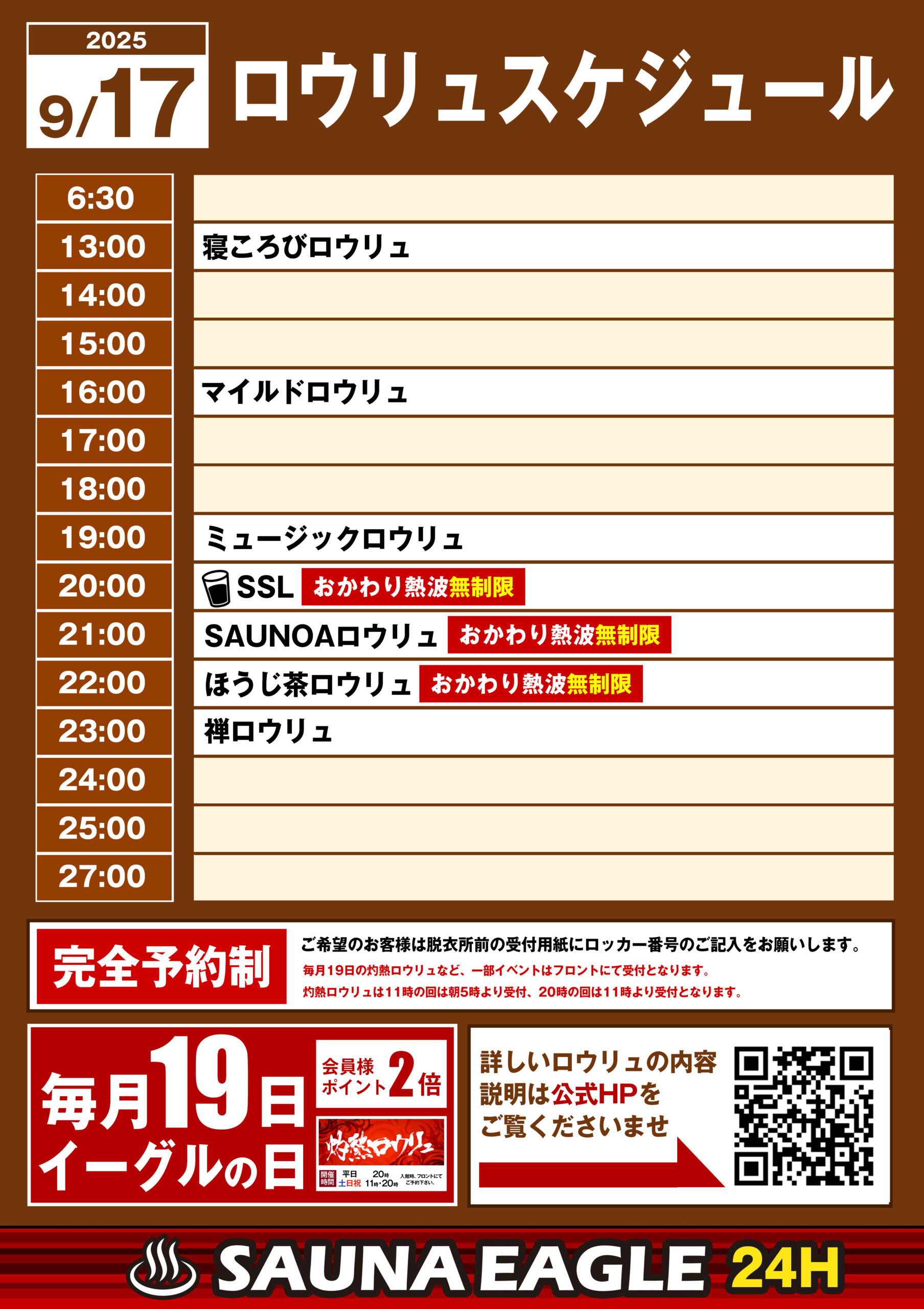 当日ロウリュスケジュール