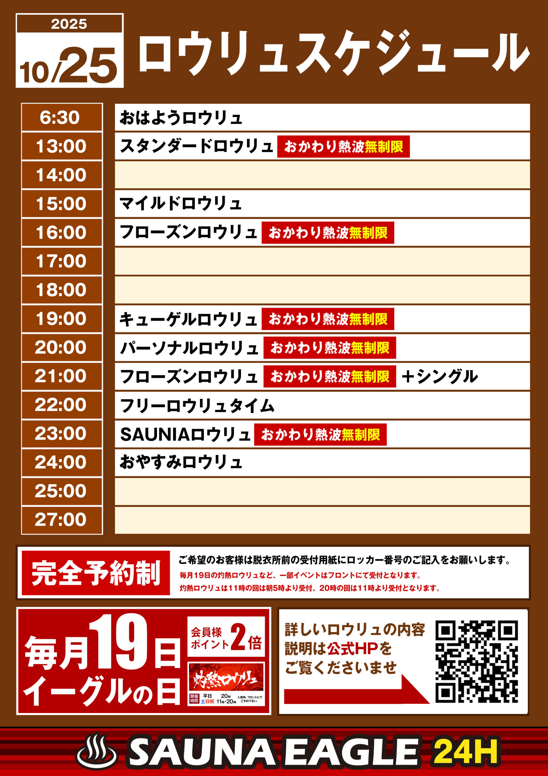 当日ロウリュスケジュール