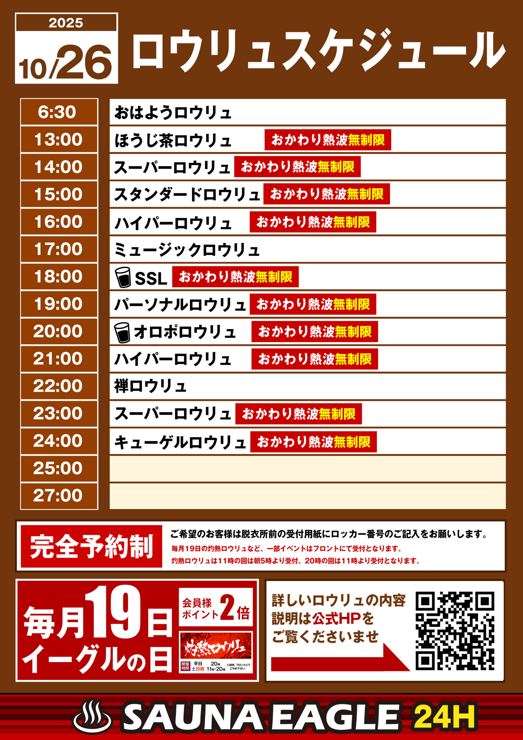 当日ロウリュスケジュール