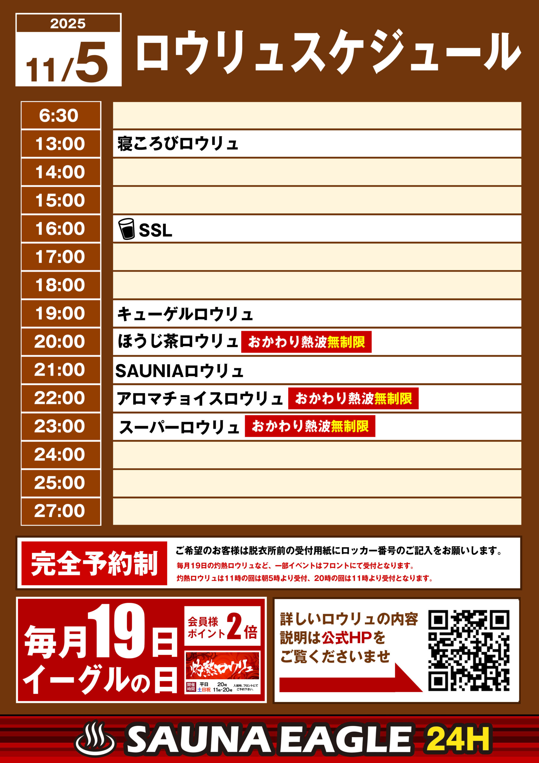 期間限定のロウリュイベントやイベントスケジュールはこちらからチェック!