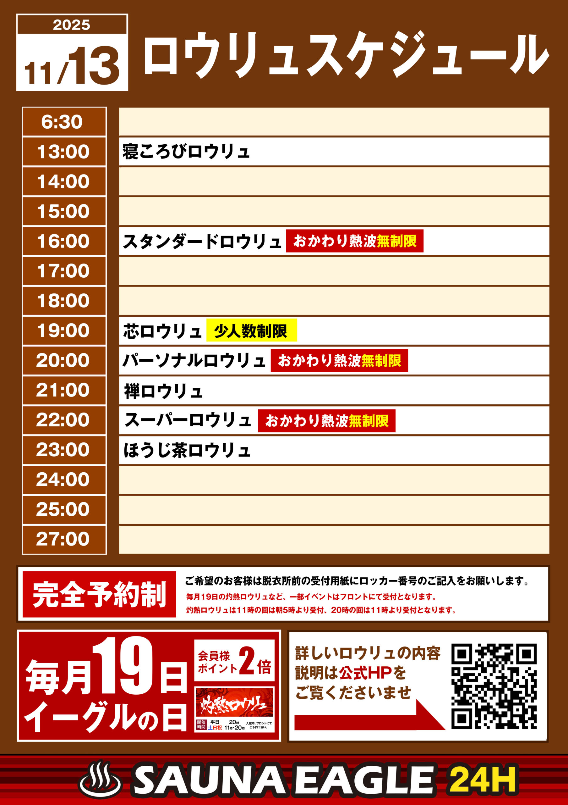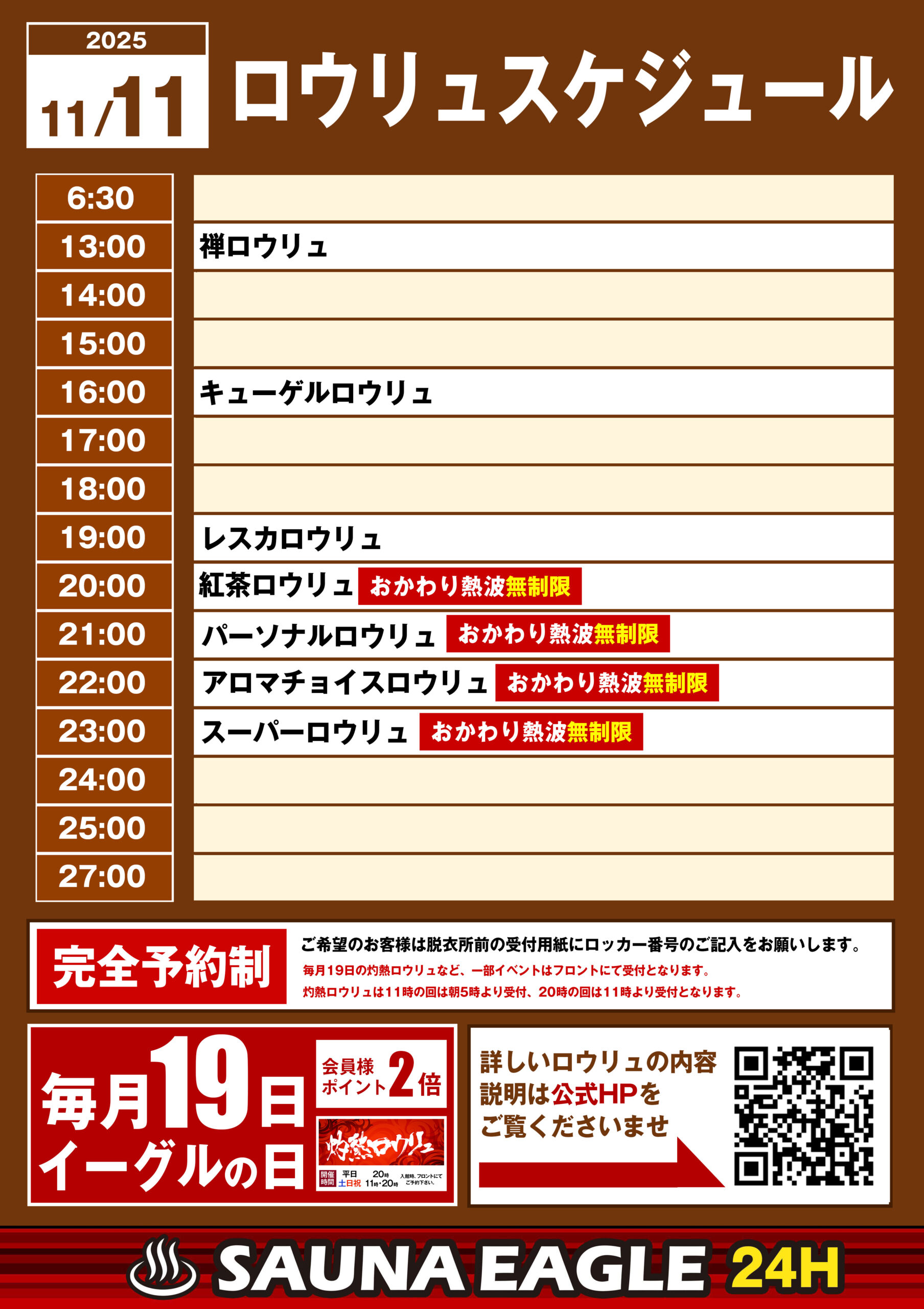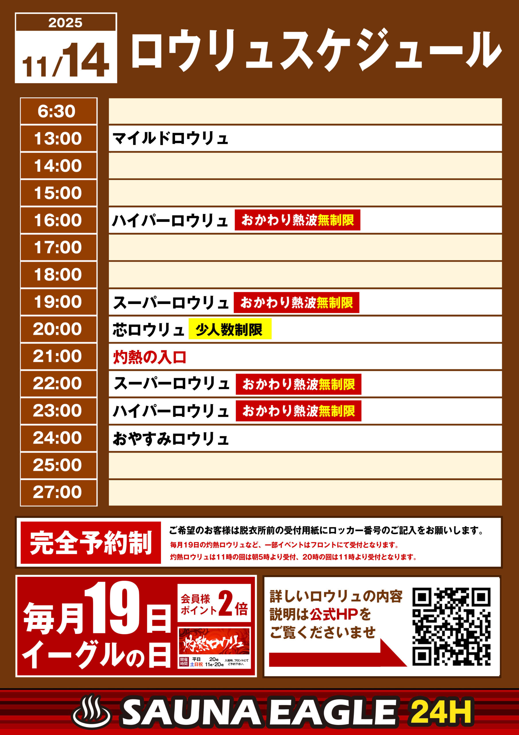 期間限定のロウリュイベントやイベントスケジュールはこちらからチェック!