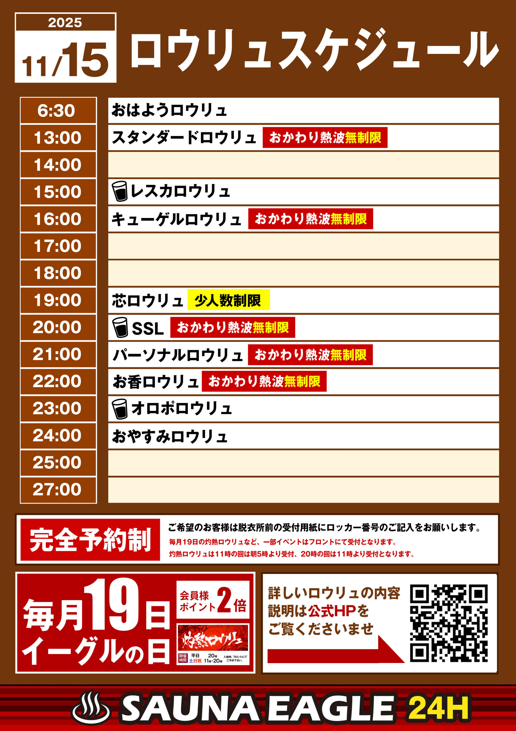 当日ロウリュスケジュール