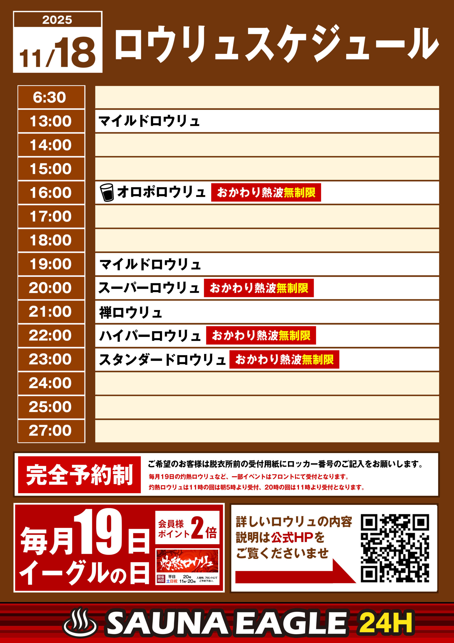 当日ロウリュスケジュール