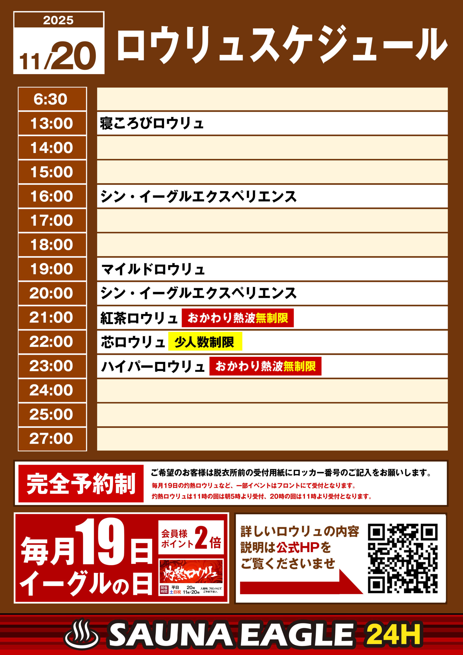 当日ロウリュスケジュール