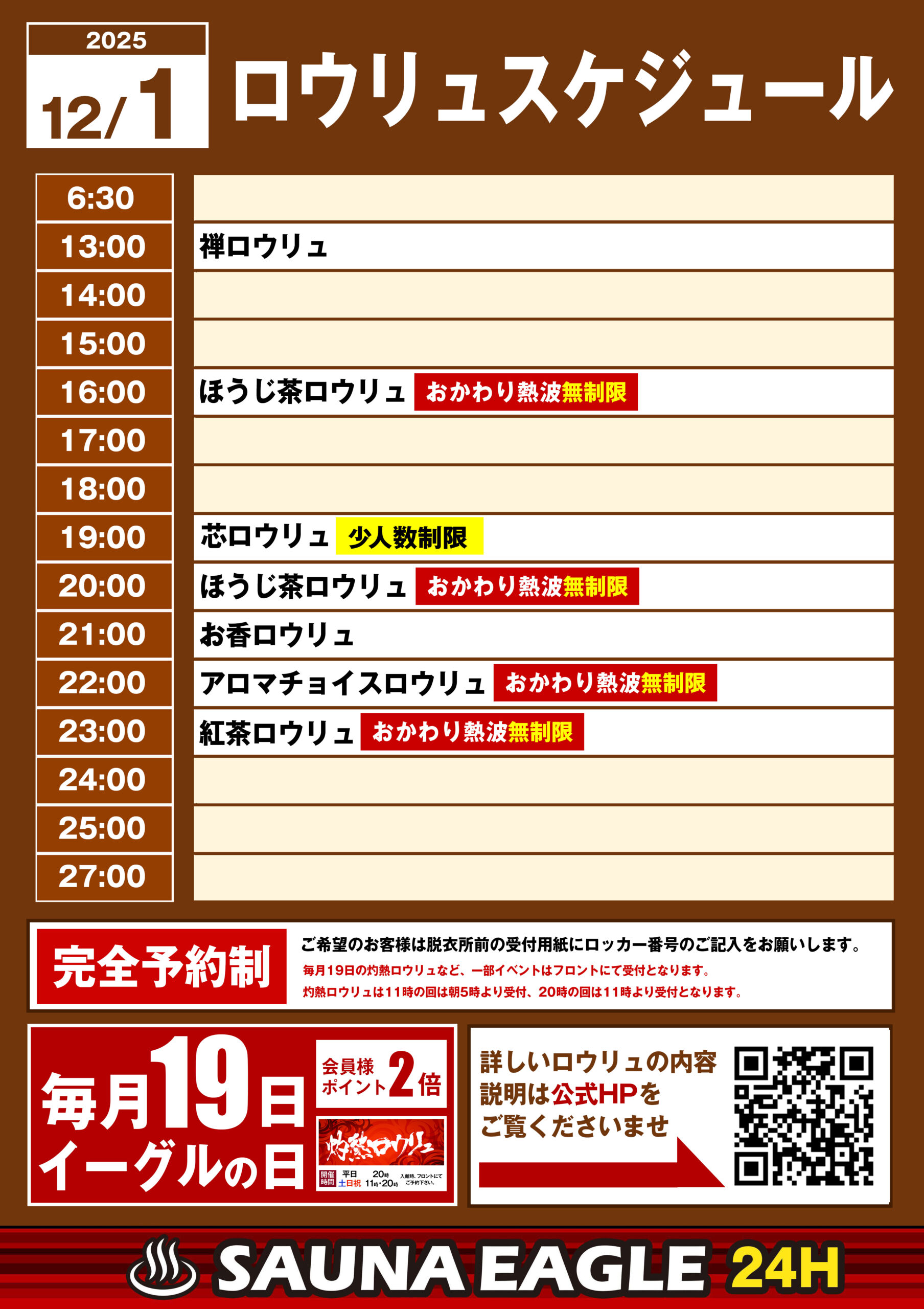 当日ロウリュスケジュール