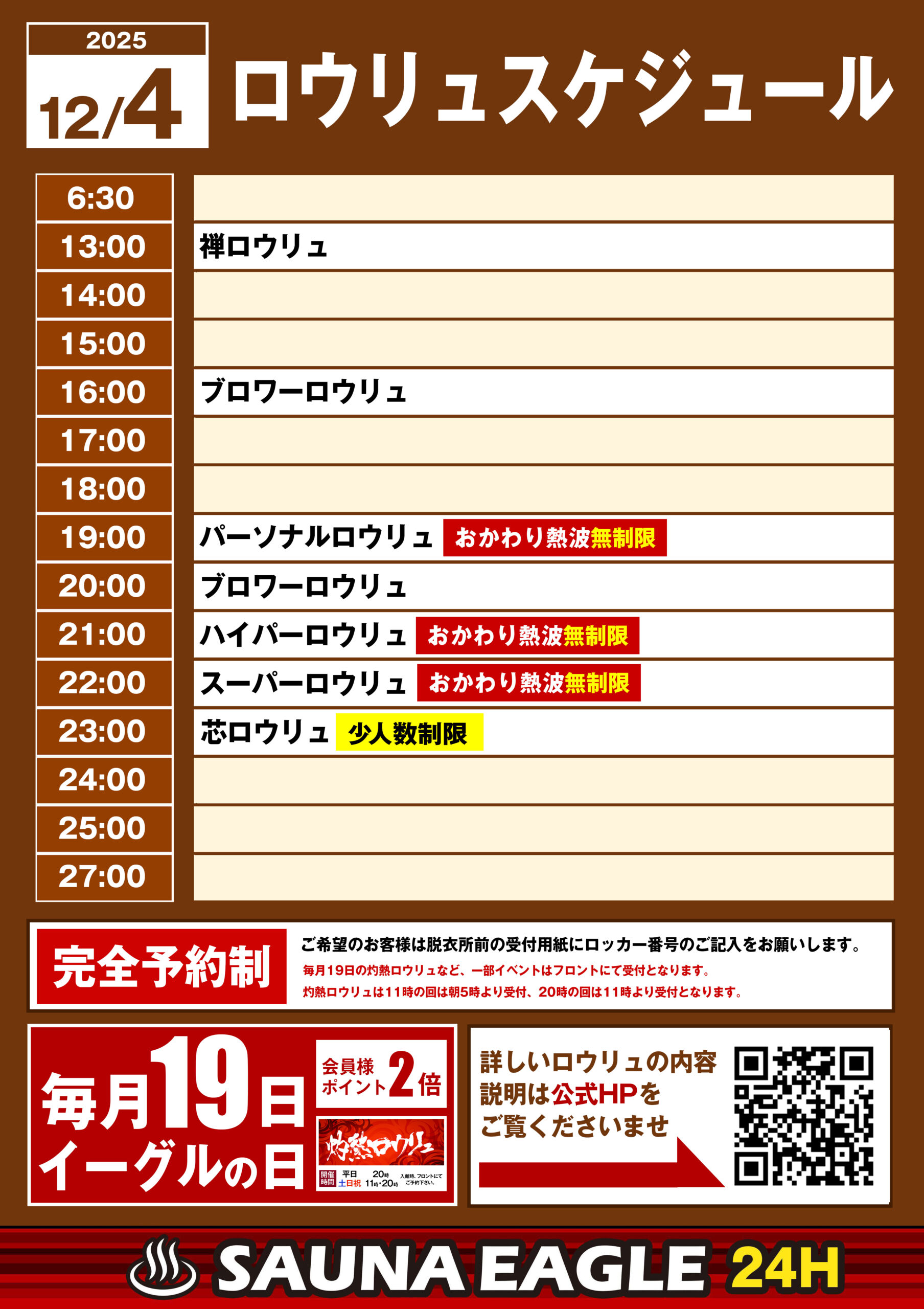 当日ロウリュスケジュール
