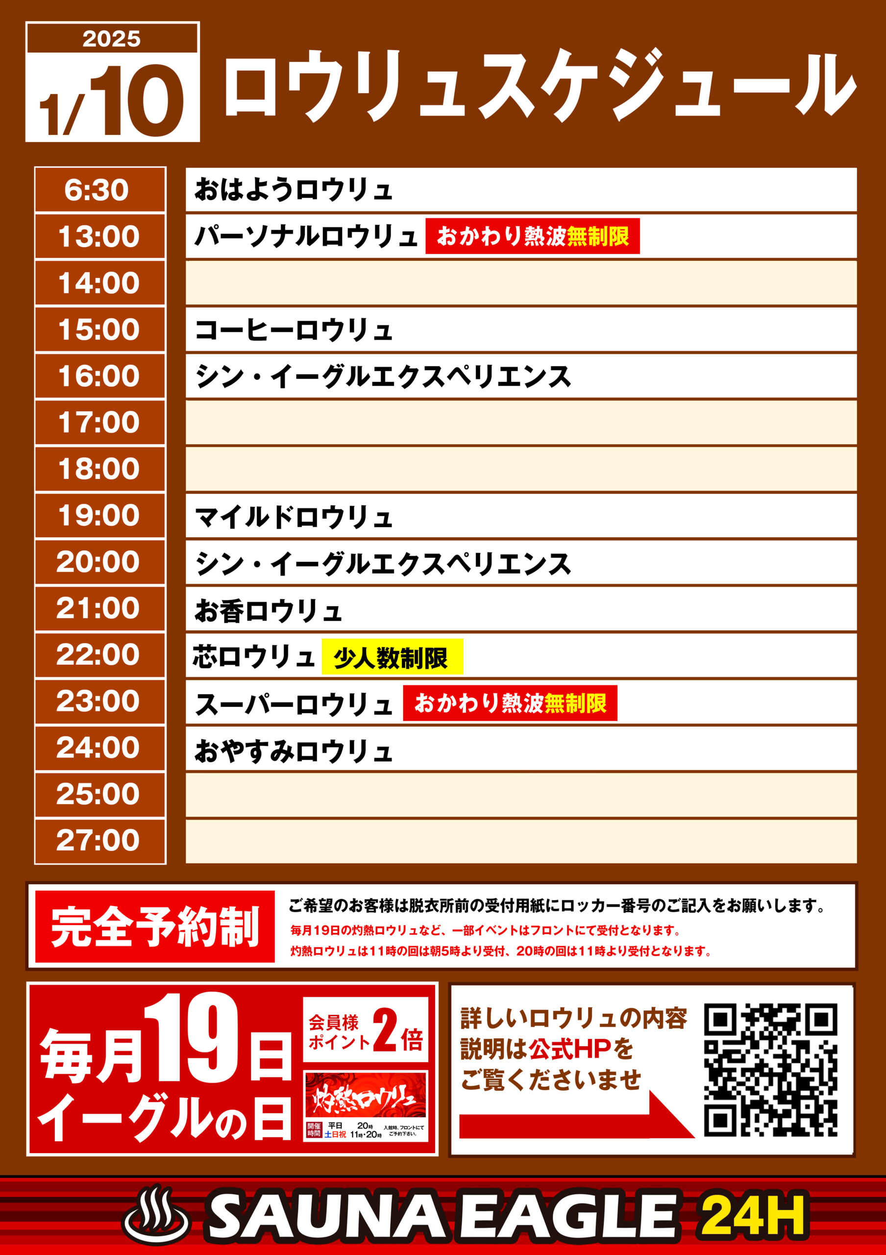 当日ロウリュスケジュール