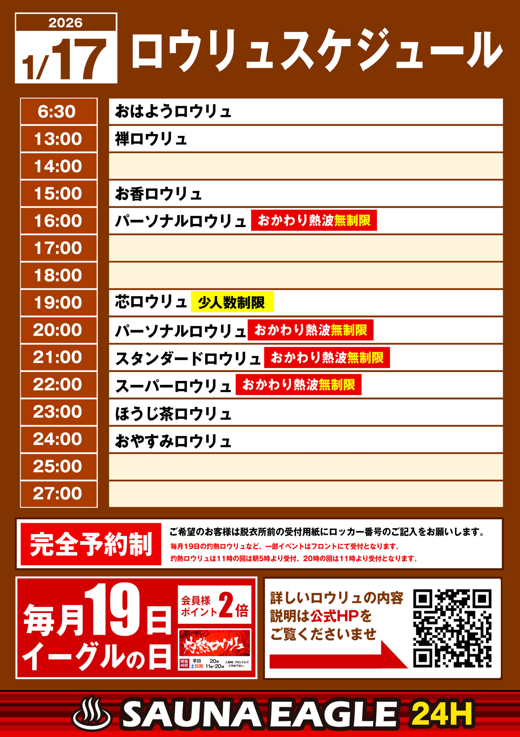 当日ロウリュスケジュール