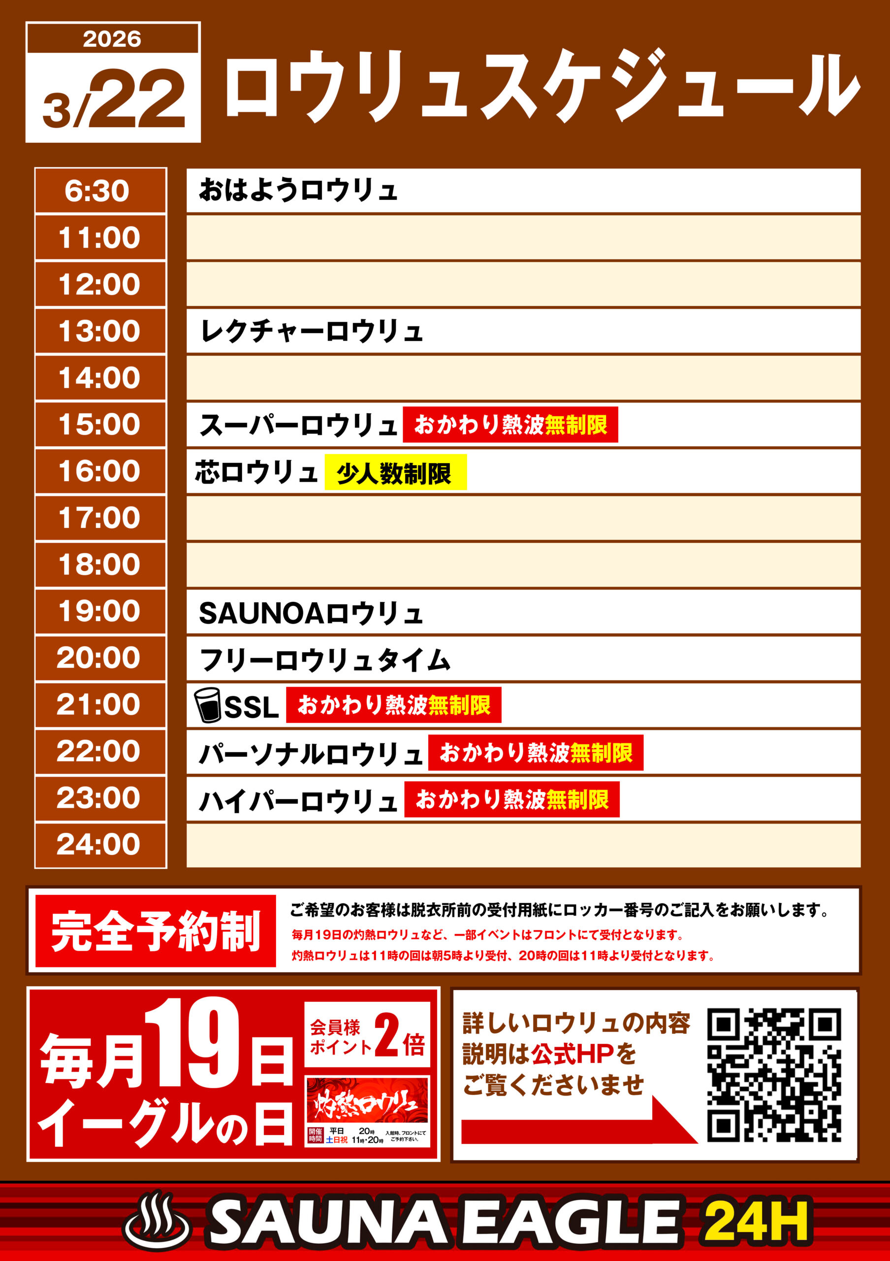 当日ロウリュスケジュール