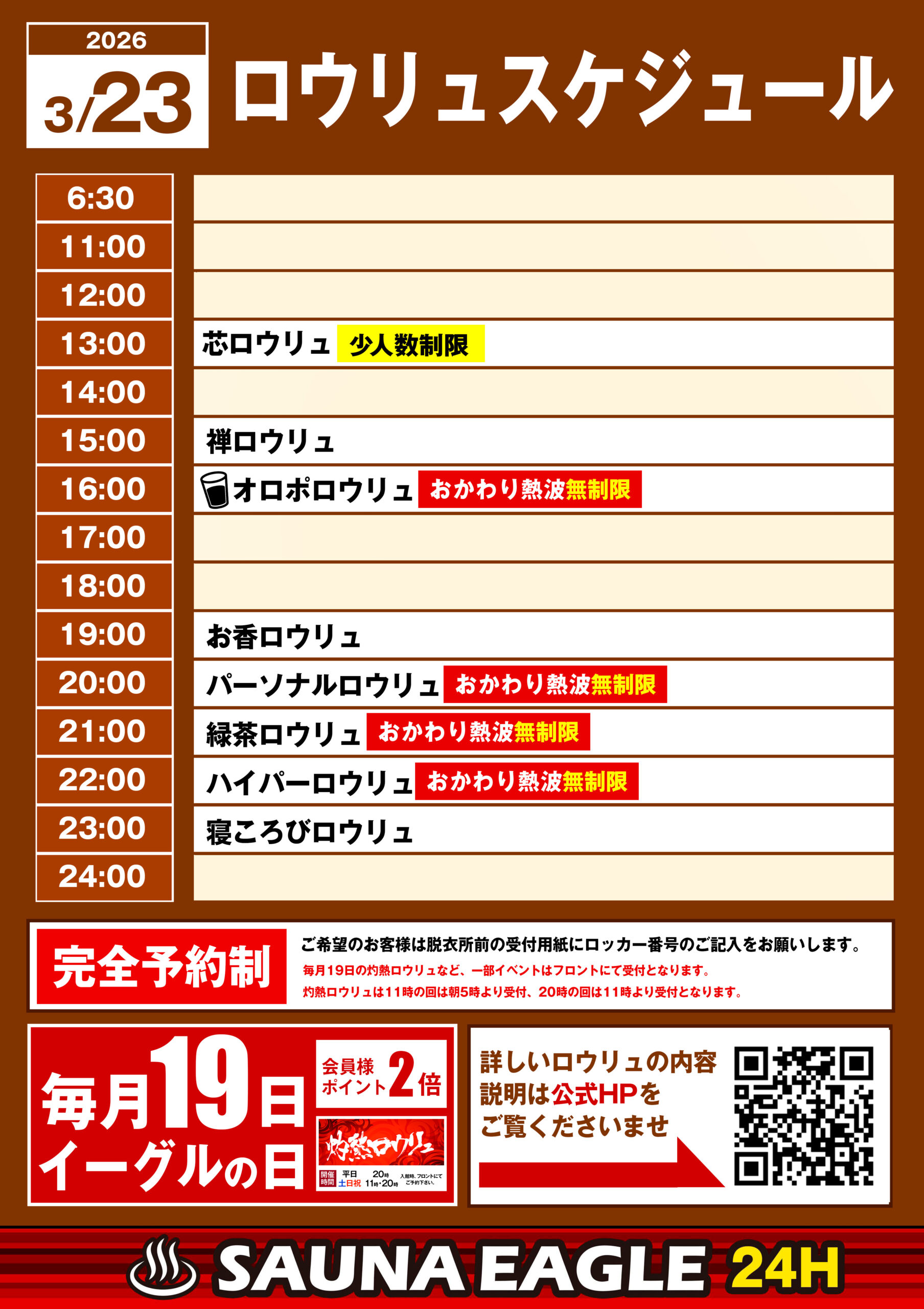 当日ロウリュスケジュール