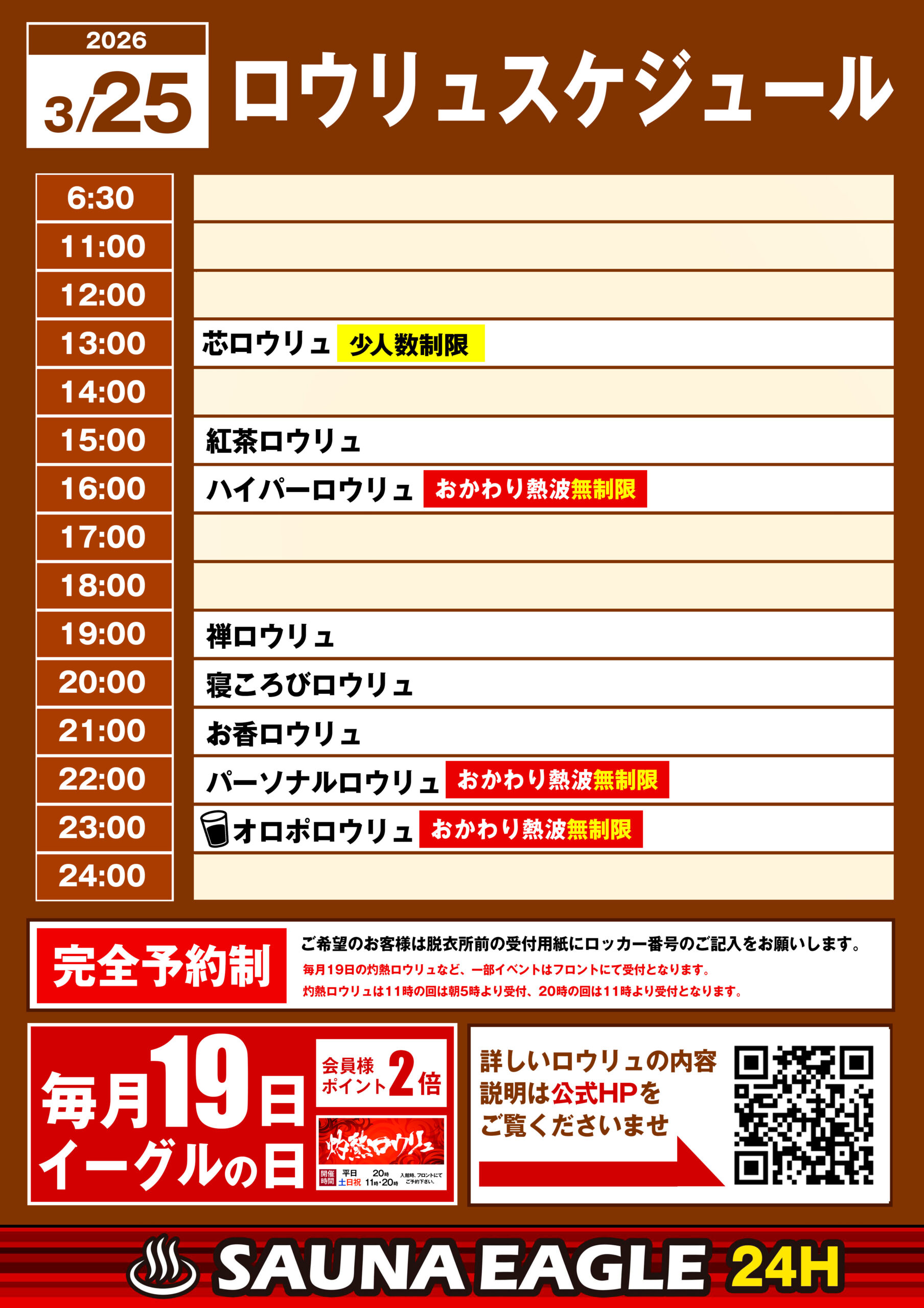 当日ロウリュスケジュール