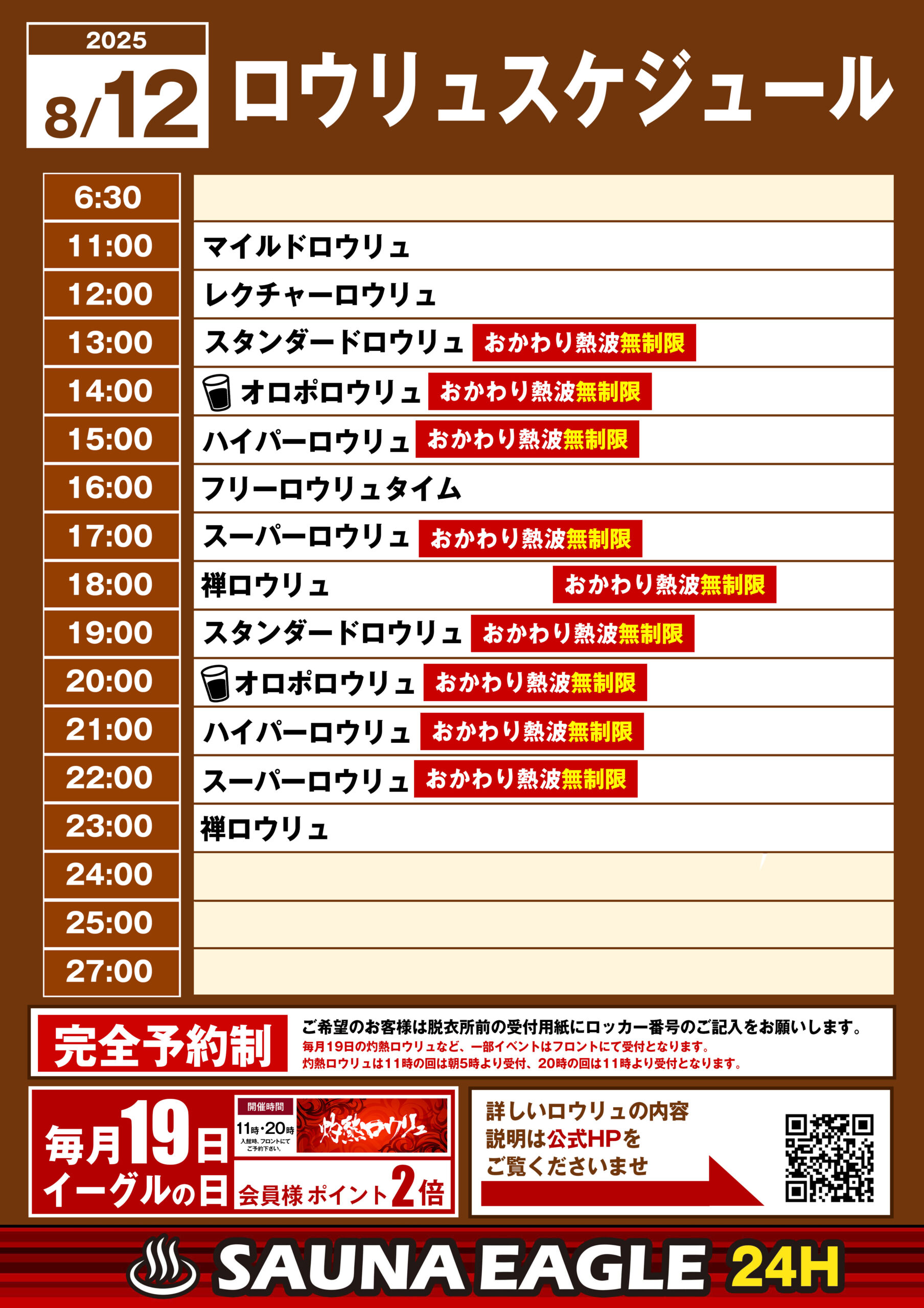 期間限定のロウリュイベントやイベントスケジュールはこちらからチェック!