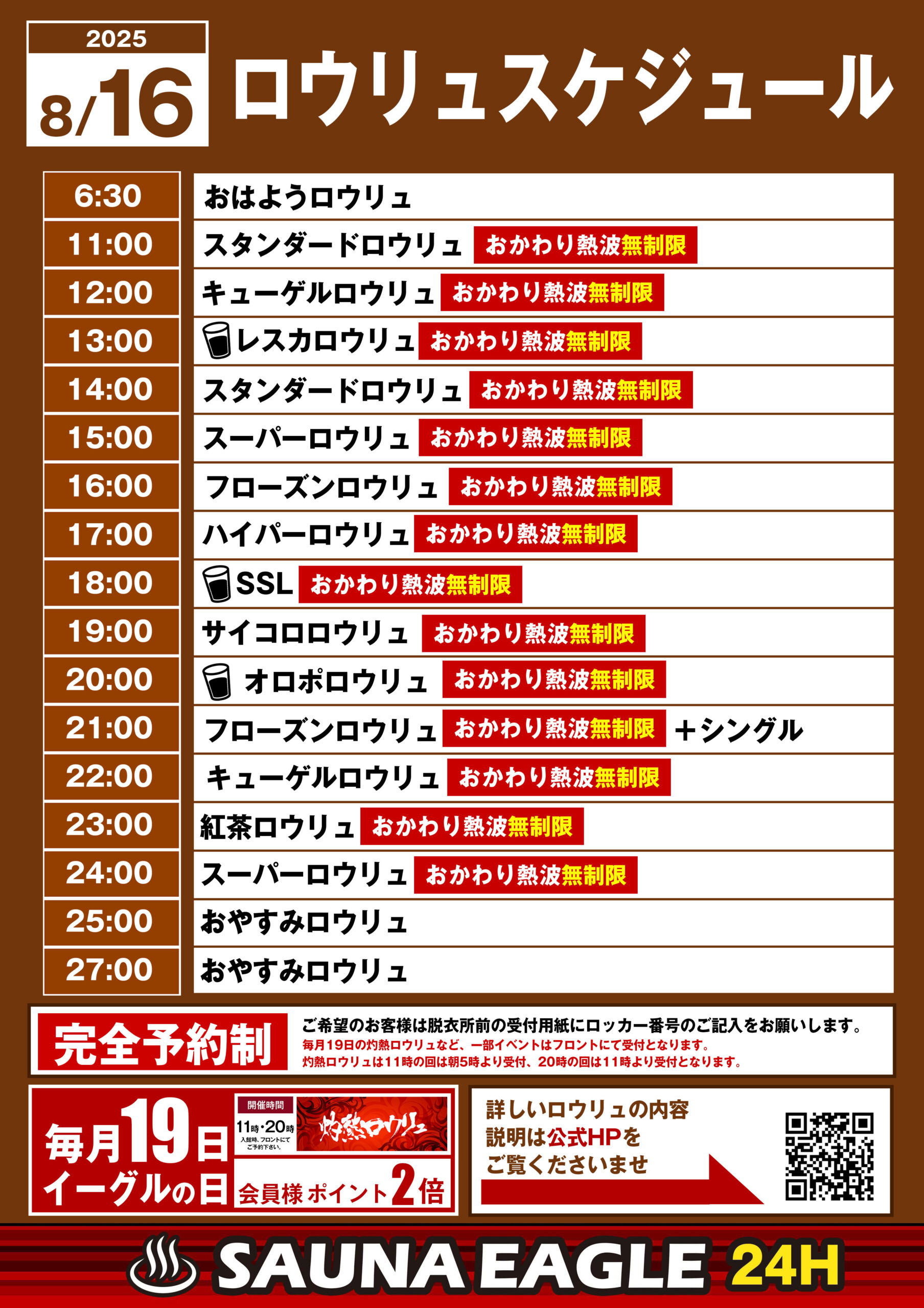 当日ロウリュスケジュール